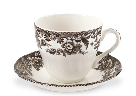 The beautiful flower and scroll design of Spode's Delamere pattern features the historic British Flowers border in a charming rich brown colourway on creamy white wares. Perfect as a stand alone pattern or layer in with Woodland.